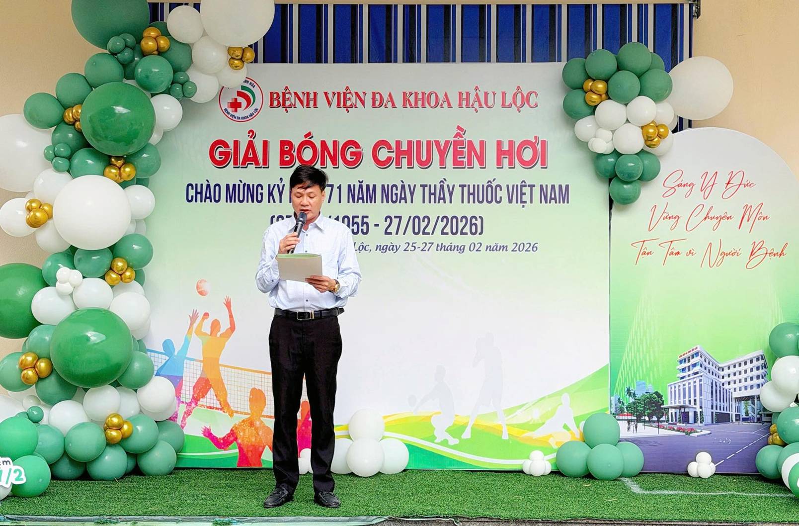 Chiều ngày 25/02/2026, trong không khí thi đua sôi nổi hướng tới kỷ niệm 71 năm Ngày Thầy thuốc Việt Nam (27/02/1955 – 27/02/2026), Bệnh viện Đa khoa Hậu Lộc đã long trọng tổ chức Lễ khai mạc Giải bóng chuyền hơi dành cho cán bộ, viên chức và người lao động toàn đơn vị.