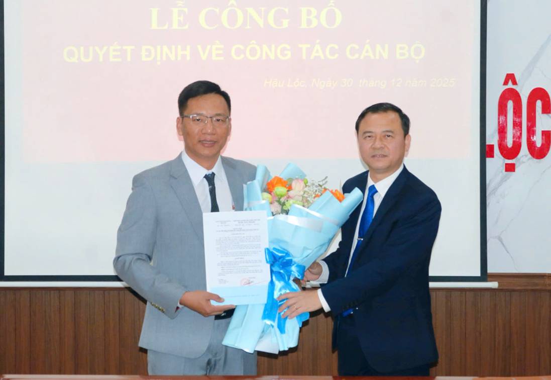 Chiều ngày 30/12/2025, tại Bệnh viện Đa khoa Hậu Lộc, đã long trọng diễn ra Lễ công bố Quyết định của Sở Y tế Thanh Hóa về công tác cán bộ, bổ nhiệm BSCKII Đinh Văn Đông giữ chức vụ Phó Giám đốc Bệnh viện Đa khoa Hậu Lộc.