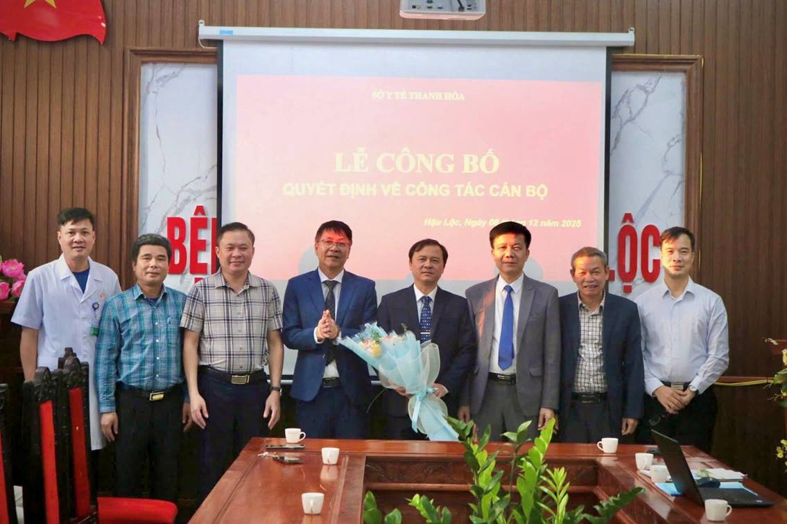 Chiều ngày 08/12/2025, tại Hội trường Bệnh viện Đa khoa Hậu Lộc, đã long trọng diễn ra Lễ công bố Quyết định của Giám đốc Sở Y tế Thanh Hóa về công tác cán bộ. Buổi lễ được tổ chức trang trọng, đúng quy định, thể hiện sự quan tâm sâu sắc của ngành Y tế tỉnh Thanh Hóa đối với công tác tổ chức, cán bộ tại các đơn vị y tế trên địa bàn.
