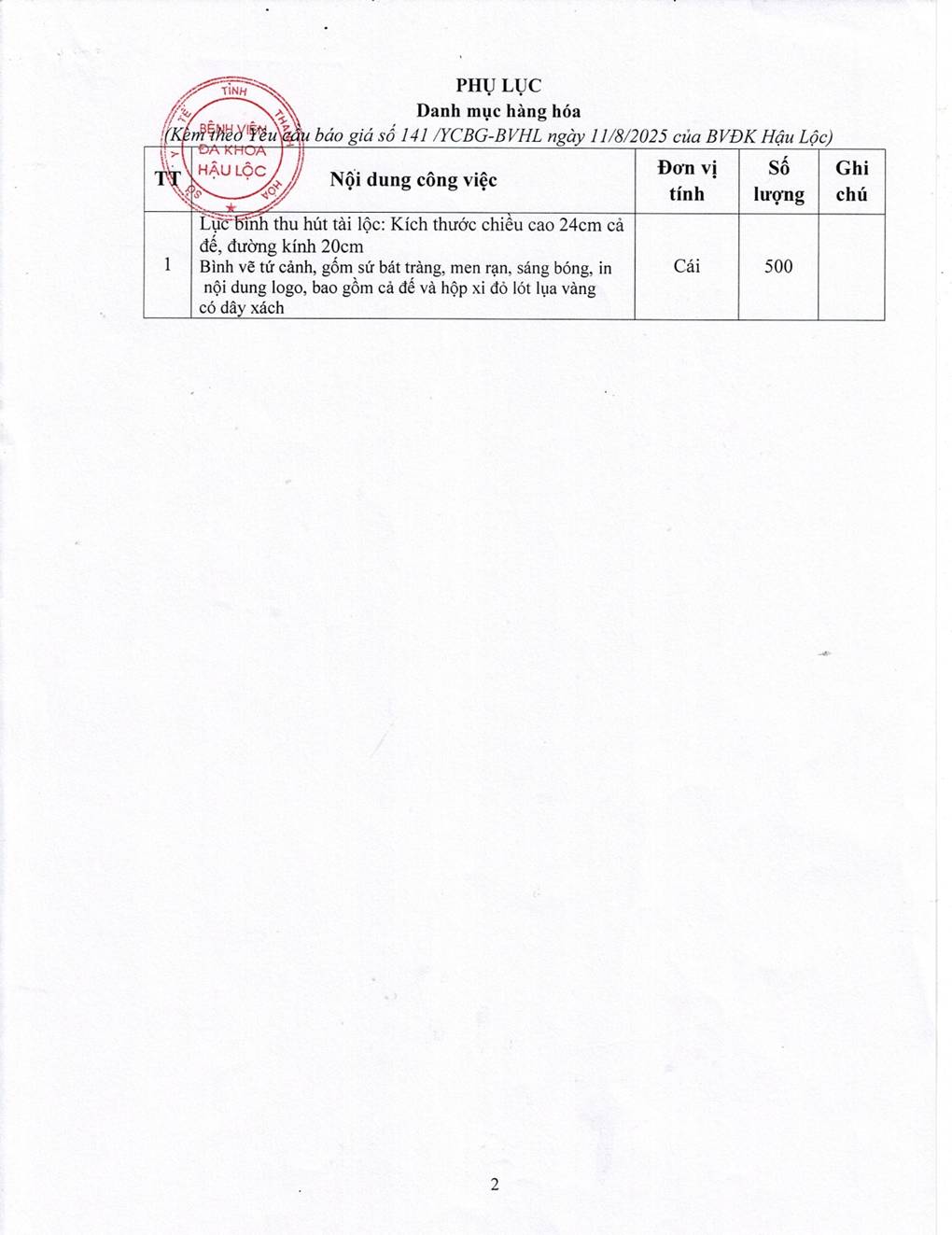 YÊU CẦU BÁO GIÁ